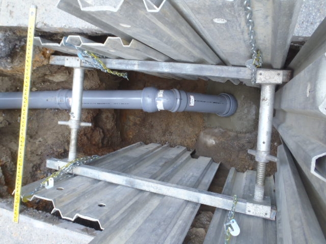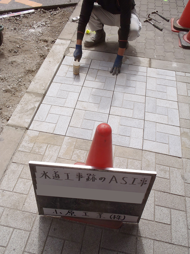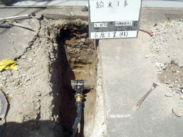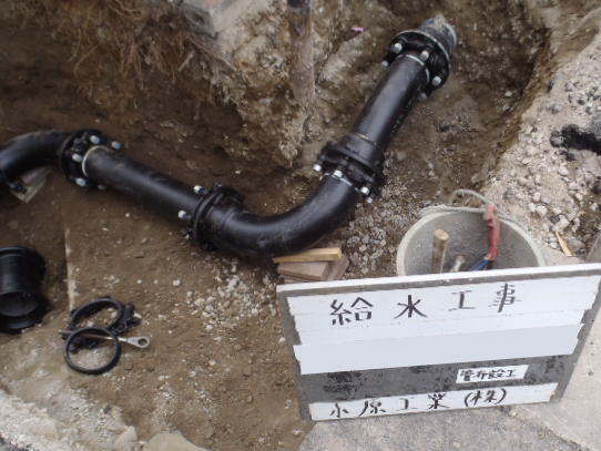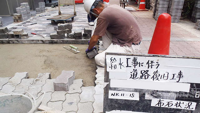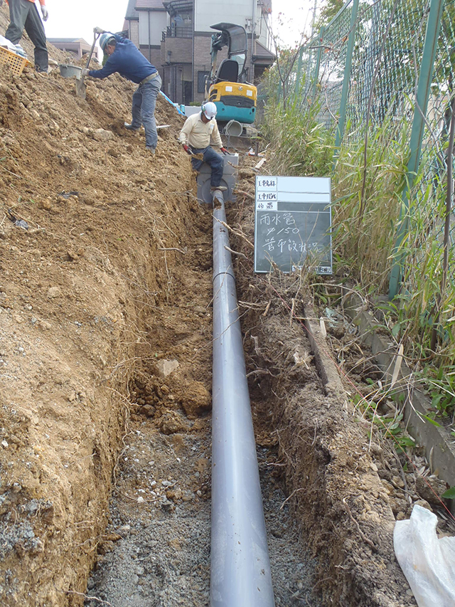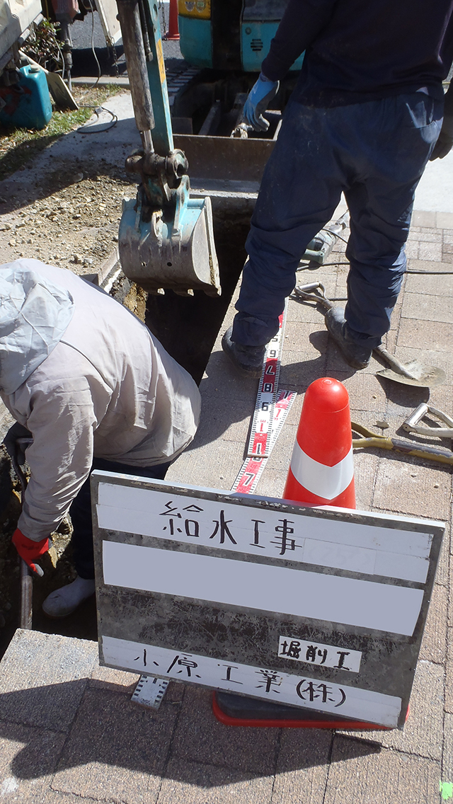 当社は、マンションなどの建物に対しての「水道管下水管の埋設工事」をメインに請け負う会社です。その他、舗装工事や地先(境界石・側溝)工事、土木工事なども請け負っています。